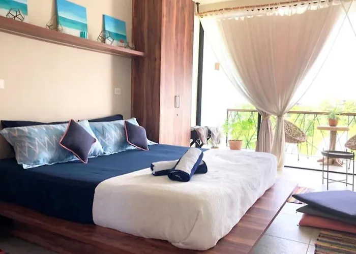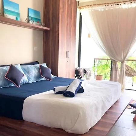 The apartment lies in the La Veleta district, about 10 minutes' drive from the national park "Parque Nacional de Tulum". Near Beach+Jungle Views. King Bed+220 Megs+2 Bikes apartment is 1.5 miles from Santitos and Aeropuerto de Playa del Carmen airport is 57 minutes’ drive away.
